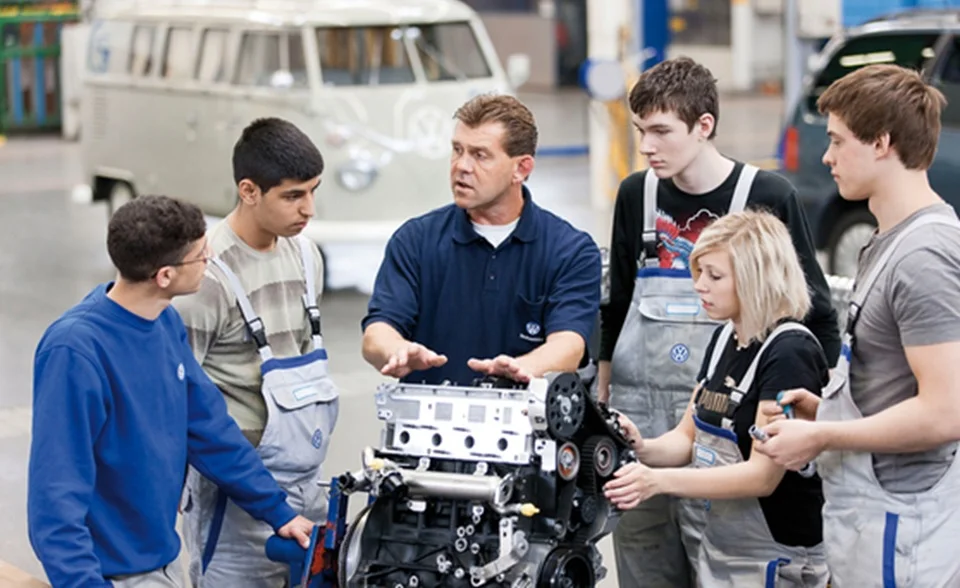 Dalam pendidikan vokasi sistem ganda, peran utama dijalankan oleh guru di sekolah yang mengajarkan teori serta pelatih di perusahaan yang membimbing praktik sesuai kebutuhan dunia kerja