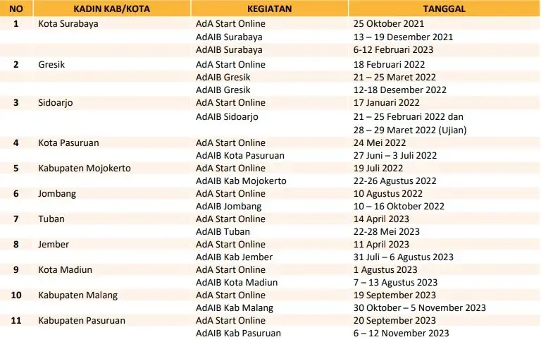 Pelatihan AdAIB yang Telah dilaksanakan: